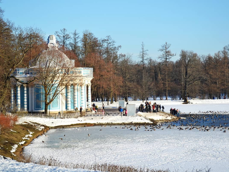Свободное время в Царском селе (2,5 часа) или за доп. плату автобусная экскурсия в Павловск. В случае набора группы те, кто не едет на дополнительную экскурсию в Павловск, проводят больше времени в Царском селе.